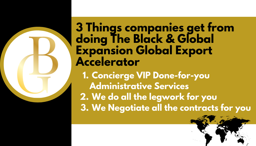 Black & Global Expansion is the ultimate solution for black entrepreneurs who want to take their businesses to the next level and expand globally. With our comprehensive suite of services, including a concierge export assistant, international business development consultation, assistance with export grants, and more, we'll guide you every step of the way.